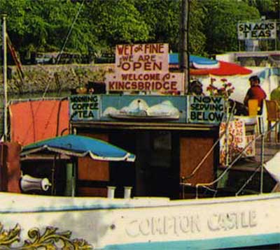 “I owned the Hotel Kildare in Kingsbridge for 36 years and I was the mayor. I carried the chain for three consecutive years. It was during one of those periods when I was also the parliamentary candidate for the Liberal Party that I spoke from the Compton Castle in front of a crowd they reckoned was 10,000. Prince Charles, he came on board her. That was when Norman Saunders was the chairman of the old urban district council. He was the local tobacconist and welcomed Charles on to the Compton Castle for a cup of tea . I suspect that was around 1971. Sam. Sam Baume, he was the town crier and had an interest in the boat. He only had one hand and either wore a hook or an artificial hand but mainly it was the artificial hand he wore. Sam's party-piece was that he would have a lit cigarette in his false hand stuck between the fingers, and then he would unscrew the hand. This was in my hotel and he’d leave it on the counter and walk down to the other end of the bar. Of course all of a sudden a visitor comes up to the bar for a drink they find a bloody hand there with a cigarette smouldering and no one attached to it. He was a character was Sam. I think he came to Kingsbridge on retirement and virtually arrived with the Compton. I never knew him do anything other than be the town crier. Before him a woman was the first town crier. She was the wife of the owner of the King's Arms and when she retired Sam took on the job, and was involved with the boat as well. It was very nice. Harry Wood was the owner I think but I didn't know much of him. Sam liked to be the front man. Sam died away from Kingsbridge, but they bought his body back to be buried in the cemetery down on the embankment.”
