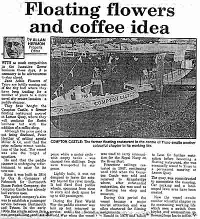 They have bought the Compton Castle, a former floating restaurant moored at Lemon Quay, where they will continue the florist business but with the addition of a coffee shop.