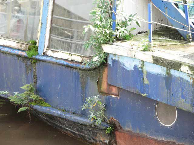 May 14 2007 I am in Truro. It has been seven years since I was last here. It is a grey wet morning at Lemon Quay. The old boat looks a sorry sight. It must be the first day of trading for the season.Two people are aboard, and removing a green tarpaulin sheet, to reveal a mess underneath of rust, rot, and weeds. Two vans have pulled up. One reads 'Flower Growers & Wholesale Florists'. They are offloading all manner of plants, which are being trolleyed to her.